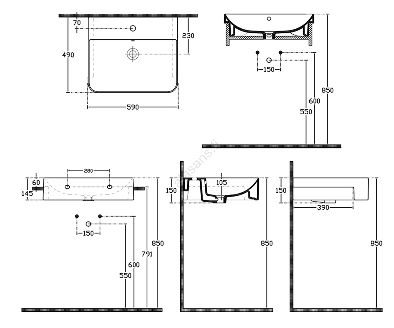 Isvea - Osittain upotettava pesuallas SOTT AQUA 59x49 cm keramiikka/valkoinen | Alasans