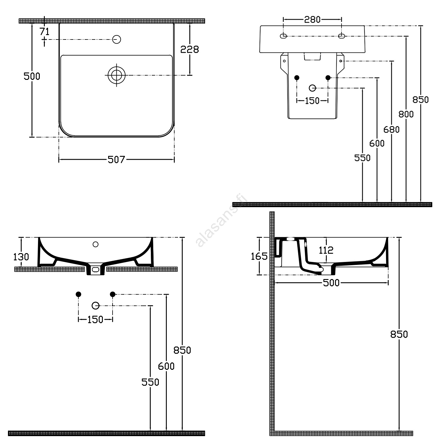 • Pesualtaan voi kiinnittää seinälle, sijoittaa tasolle tai upottaa tasoon.