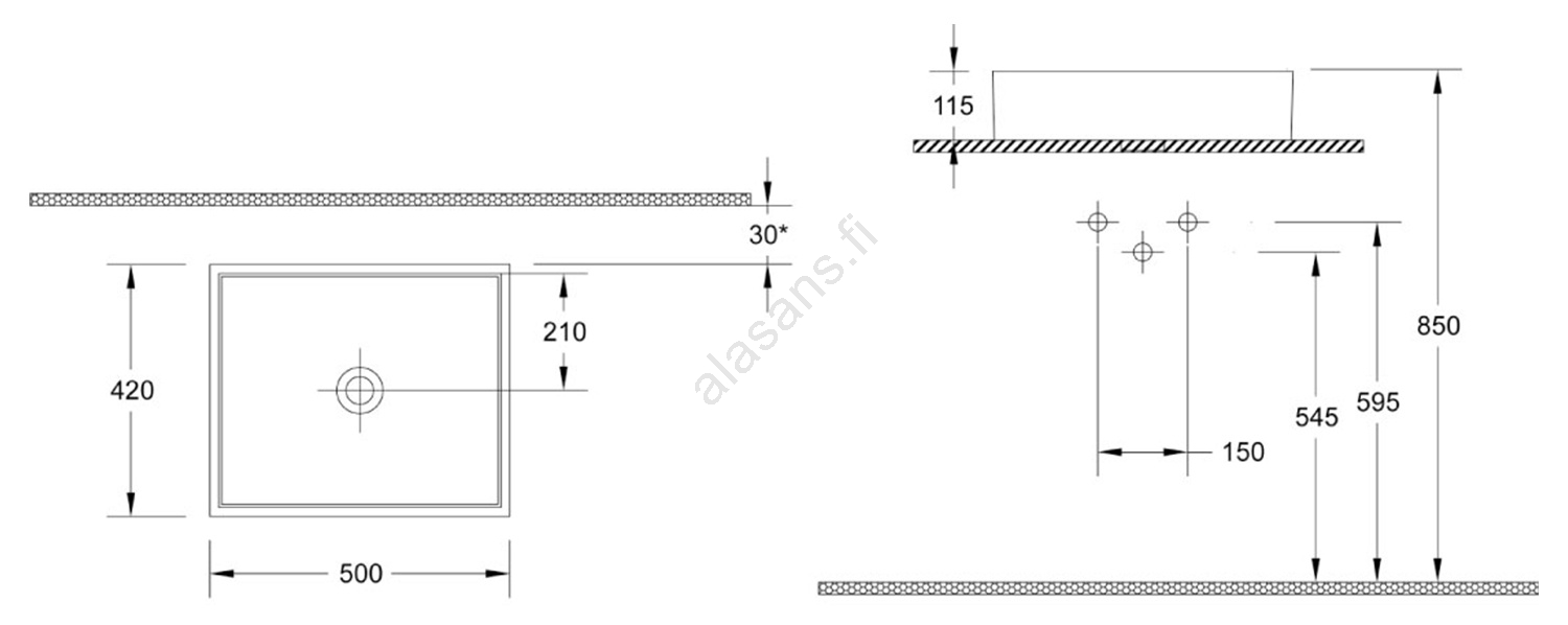 • Pöytätasolle asennettava pesuallas on valmistettu keramiikasta.