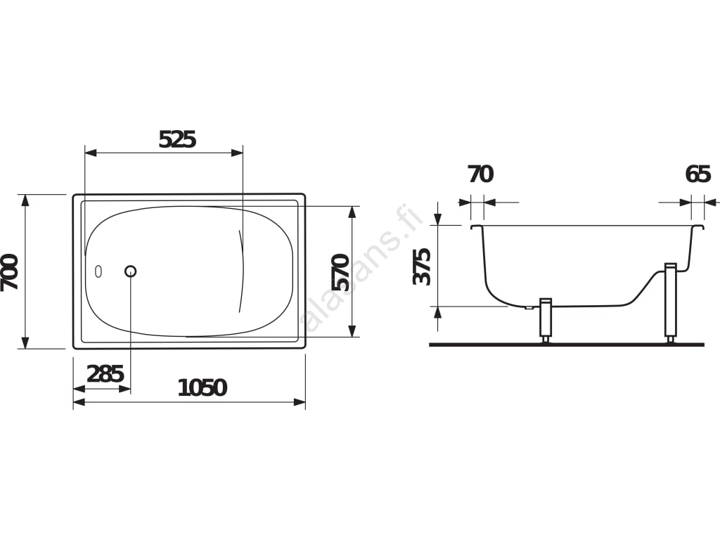 JIKA H2340000000001 - RIGA istuva kylpyamme 105x70 teräs/valkoinen | Alasans