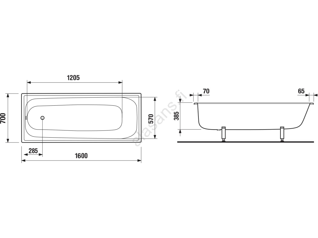 JIKA H2340600000001 - Kylpyamme RIGA 160x70 teräs/valkoinen | Alasans