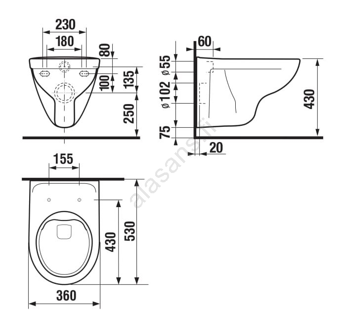 JIKA H8213840000001 - Seinään kiinnitettävä WC LYRA, keramiikka/valkoinen | Alasans