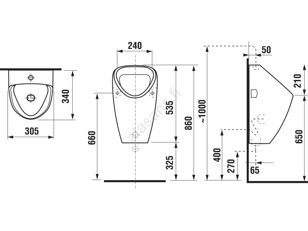 JIKA H8430610000001 - Pissuaari GOLEM sisäinen vesiliitäntä, takaviemäri keramiikka/valkoinen | Alas