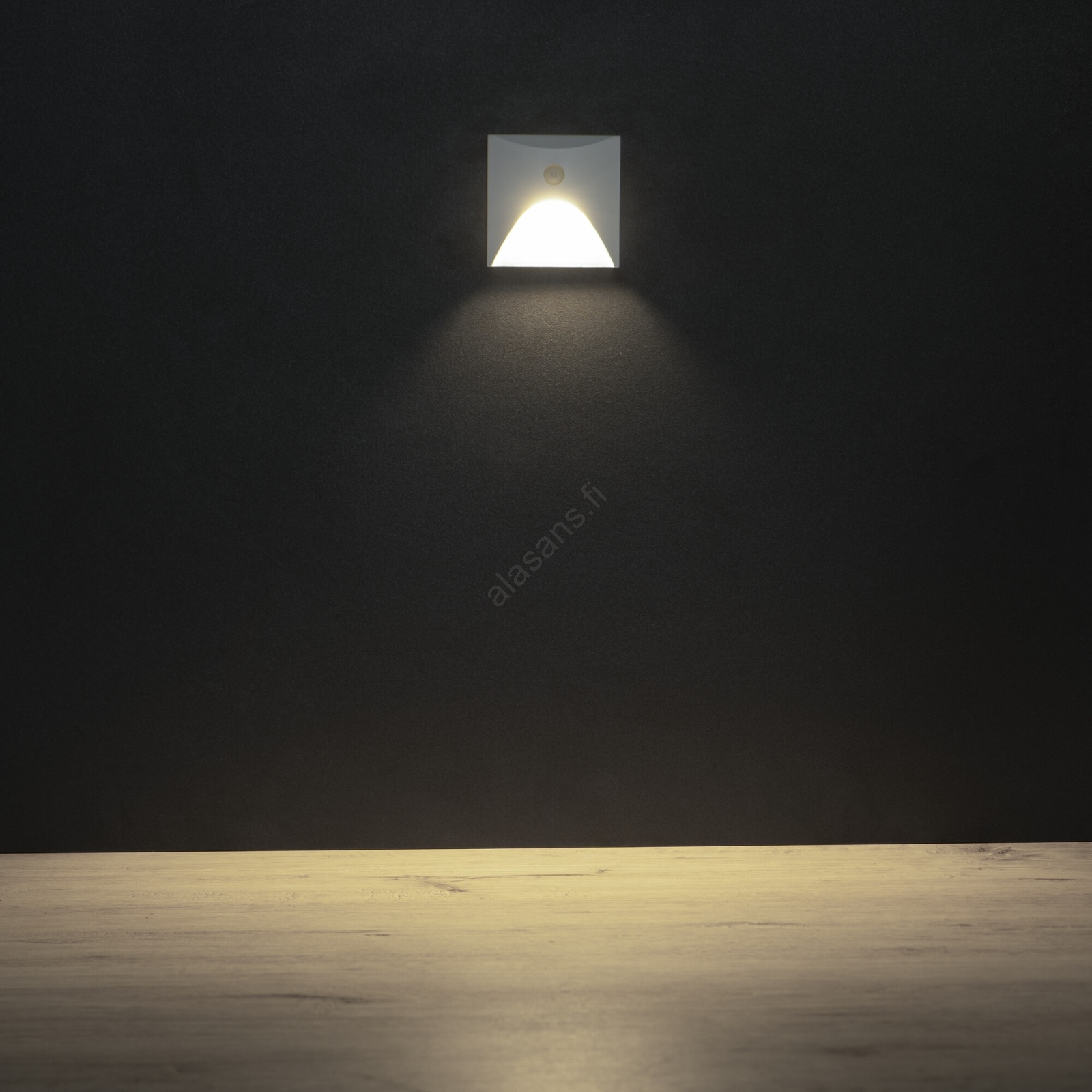 LED-porrasvalaisin, jossa liiketunnistin ja hämäräkytkin EXIN LED/2,5W/230V 4000K IP65 valkoinen, neliönmuotoinen