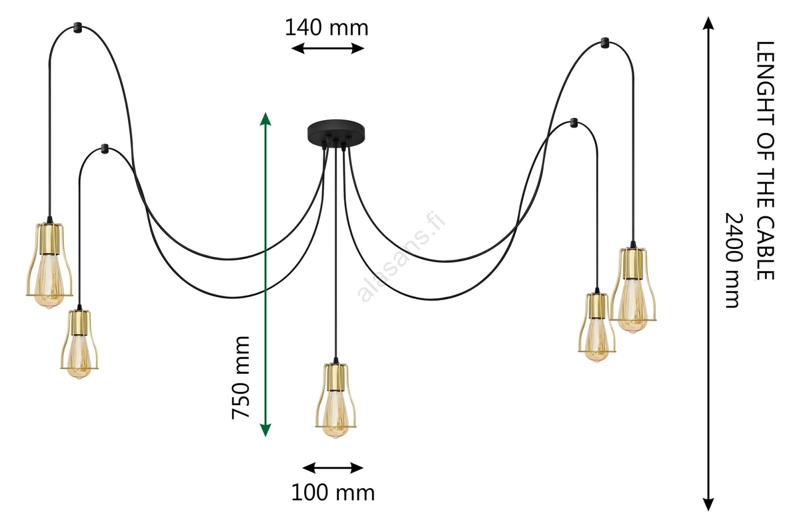 Kattokruunu johdossa TUBE LONG 5xE27/15W/230V musta/kulta | Alasans