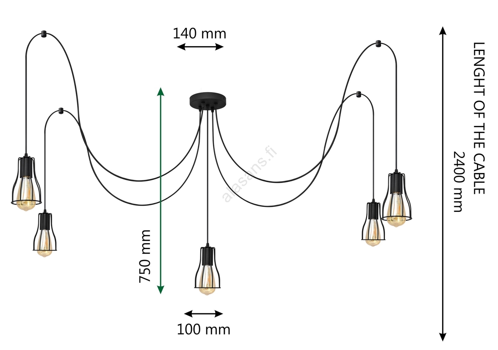 Kattokruunu johdossa TUBE LONG 5xE27/10W/230V musta | Alasans