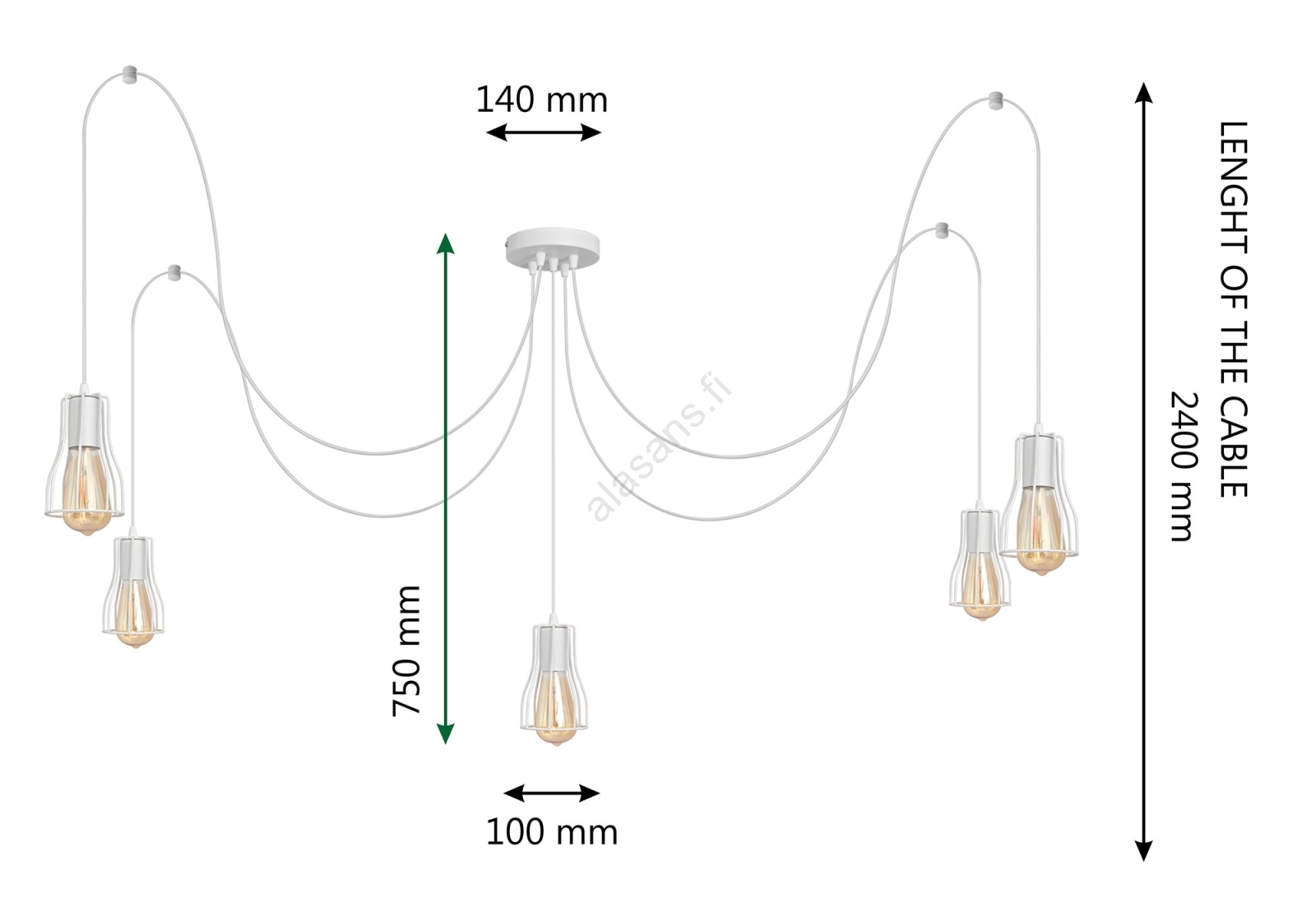 Kattokruunu johdossa TUBE LONG 5xE27/10W/230V valkoinen | Alasans