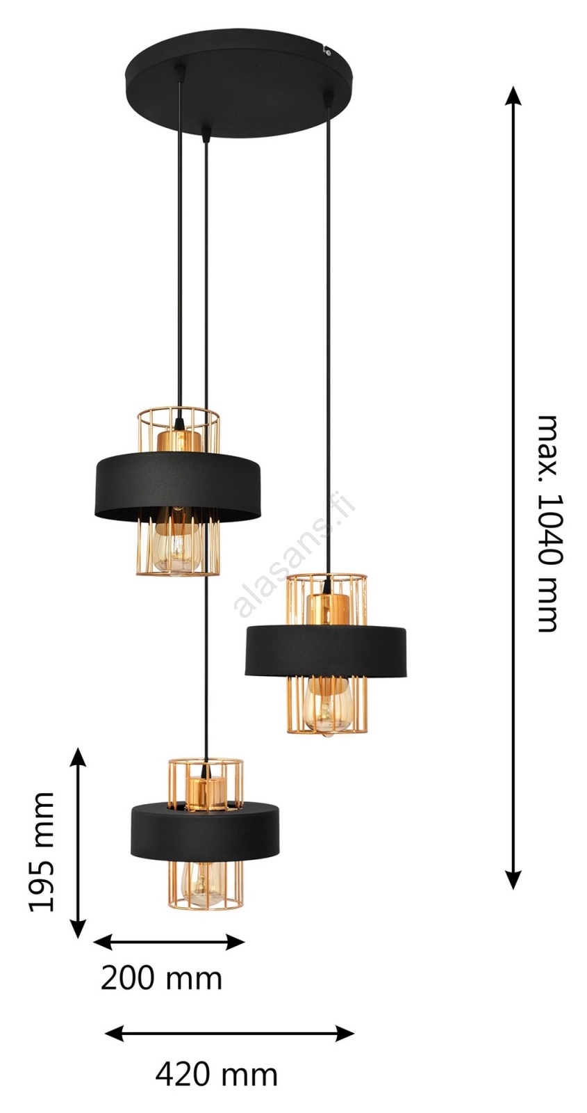 Kattokruunu johdossa VOLTA 3xE27/15W/230V musta/kulta | Alasans
