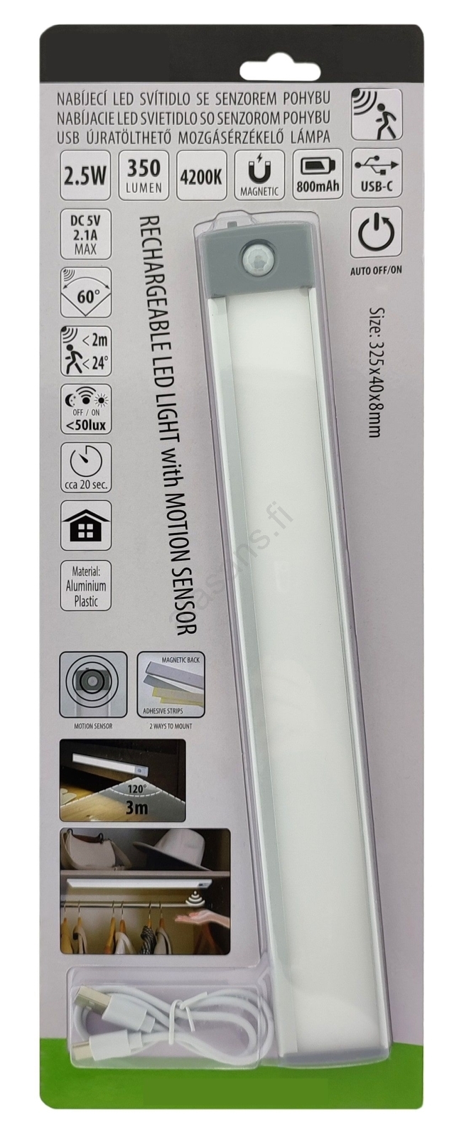 LED ladattava kalustevalaisin sensorilla LED/2,5W/5V USB 800 mAh 4200K 32,5 cm | Alasans