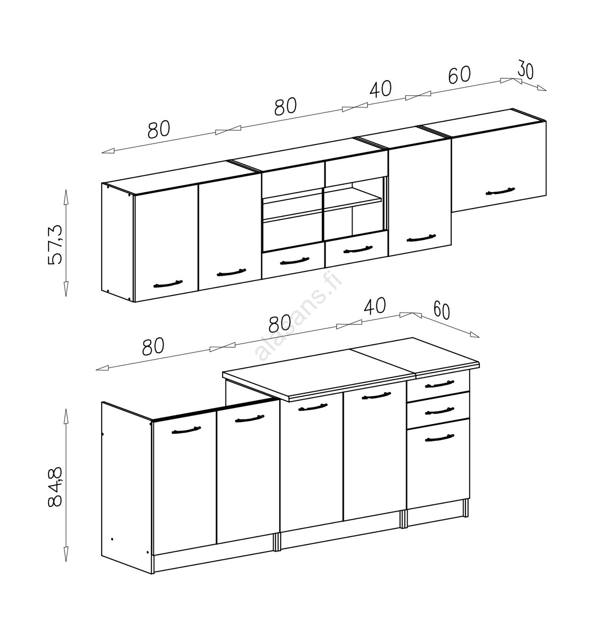 Huonekalut, Keittiökokonaisuudet, Suorat keittiökalusteet