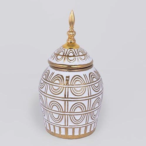 Keraaminen purkki 28x15 cm kulta/valkoinen