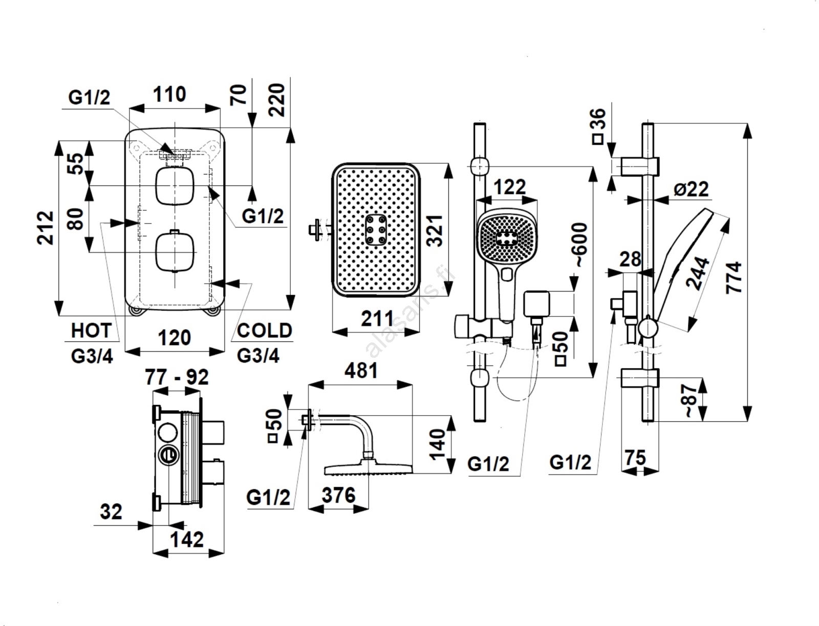 • Pakkaus sisältää: uppoasennusrasia, täydellinen hanasarja, suihkuvarsi, suihkupää letkulla, piilotettu liukuva käsisuihku.