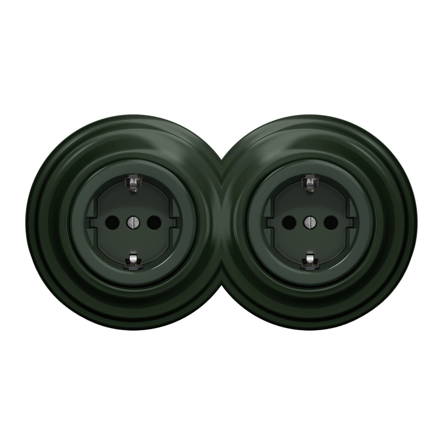 Kliklap - Retrotyylinen kaksoispistorasia kodin käyttöön, kehys SCHUKO 230V, vihreä