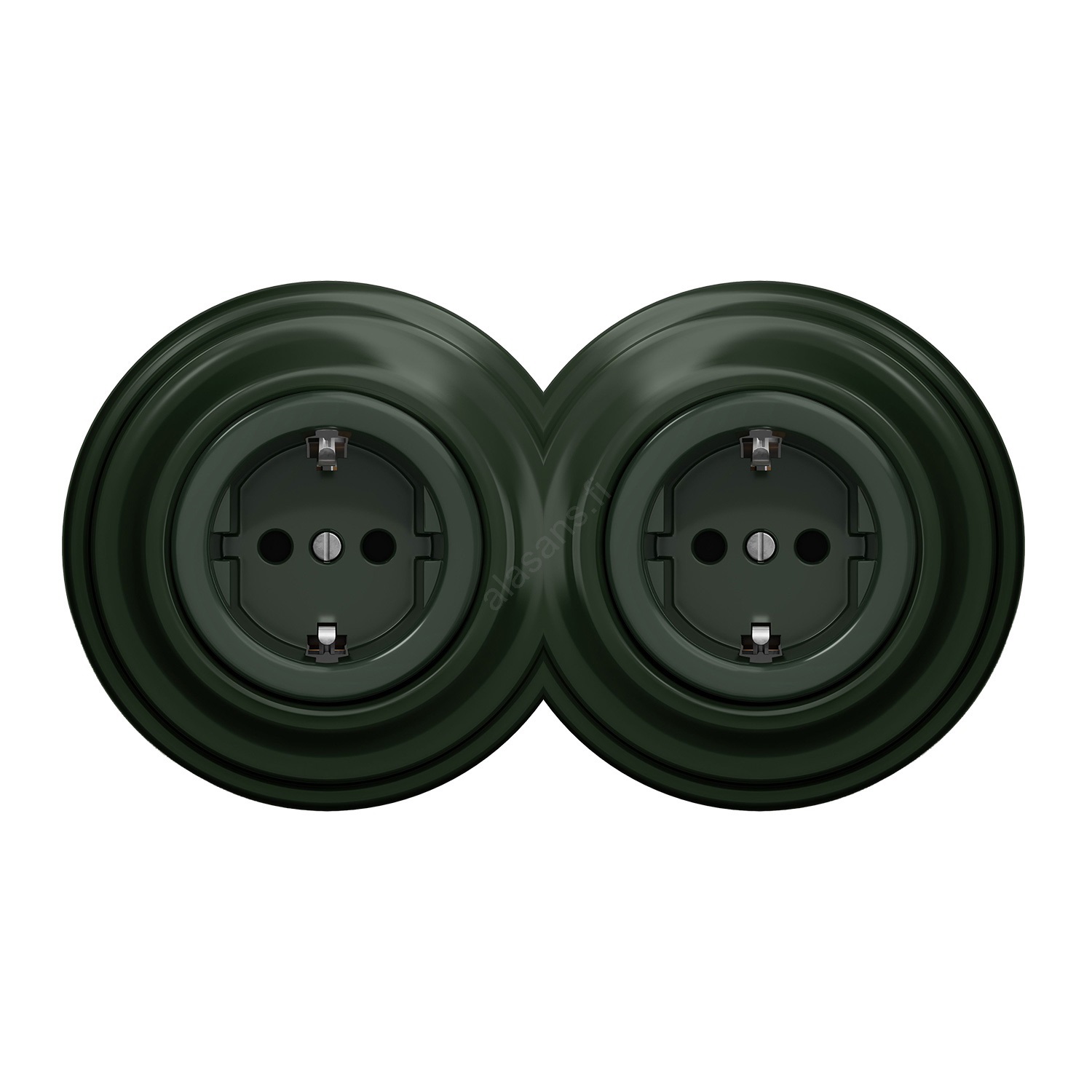 Kliklap - Retrotyylinen kaksoispistorasia kodin käyttöön, kehys SCHUKO 230V, vihreä | Alasans