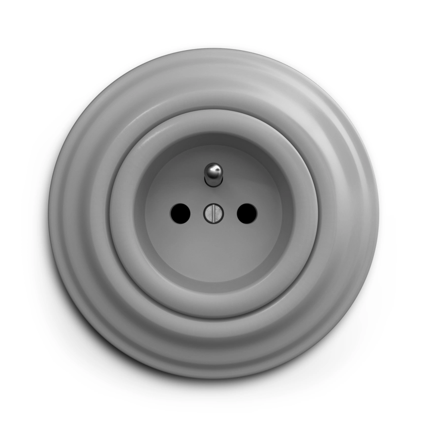 Kliklap - Retro-tyylinen pistorasia kotitalouskäyttöön kehyksellä, 230 V, harmaa | Alasans
