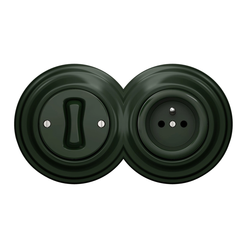 Kliklap - Retro yksinapainen kytkin nro 1 ja 230 V pistorasia kehyksellä, vihreä