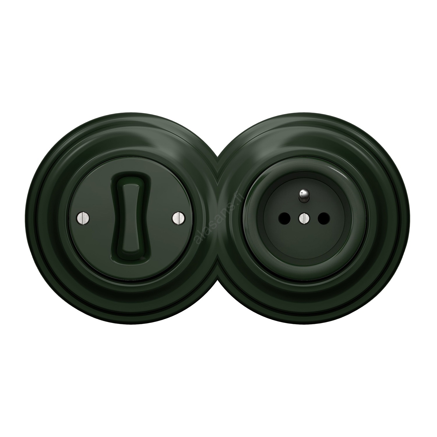 Kliklap - Retro yksinapainen kytkin nro 1 ja 230 V pistorasia kehyksellä, vihreä | Alasans