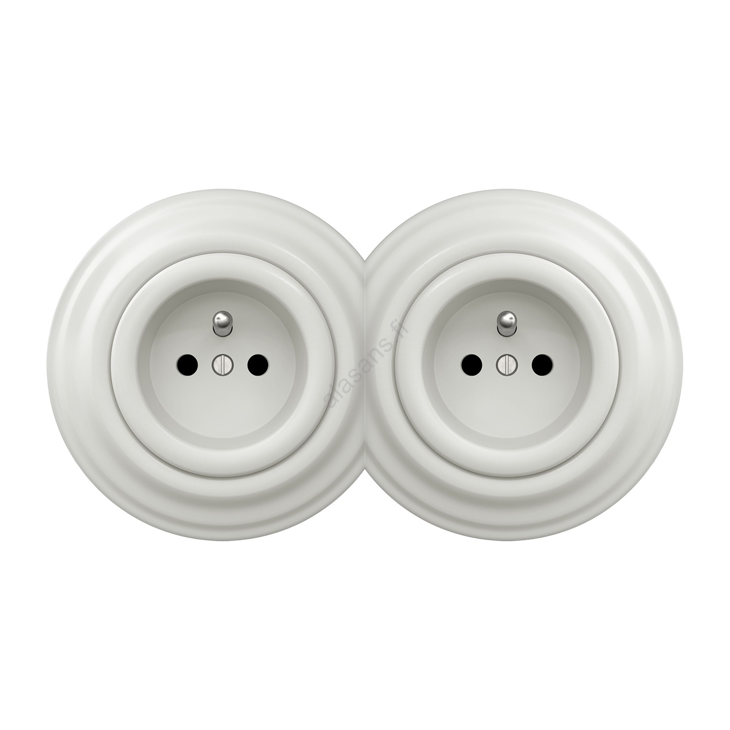 Kliklap - retrotyylinen kaksoispistorasia kehyksellä, 230 V, valkoinen | Alasans