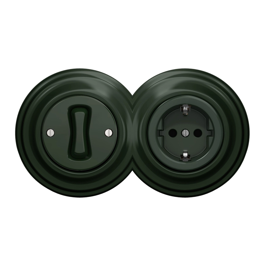 Kliklap - Retro yksinapainen katkaisija nro 1 ja SCHUKO-pistorasia 230 V kehyksellä, vihreä