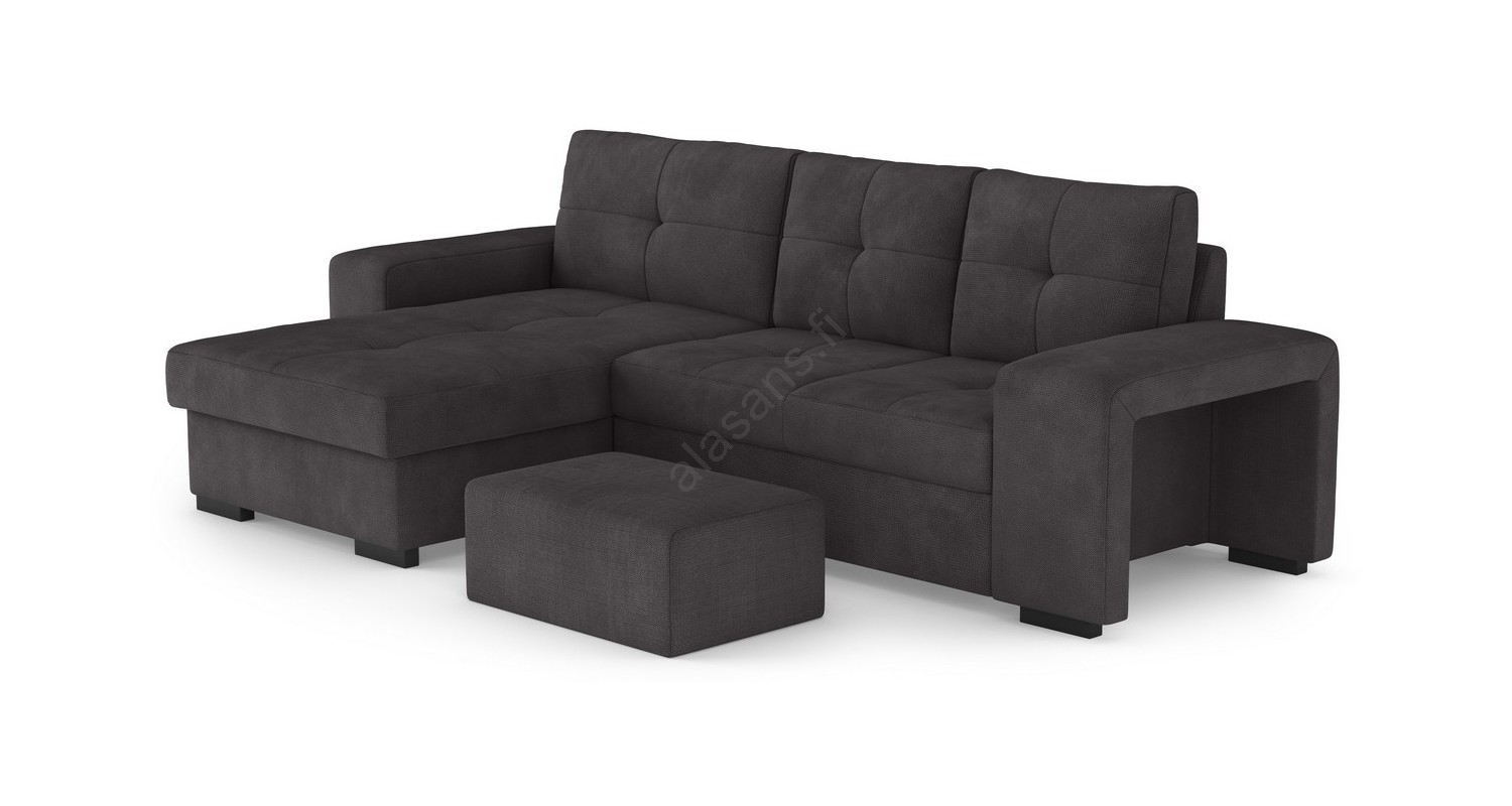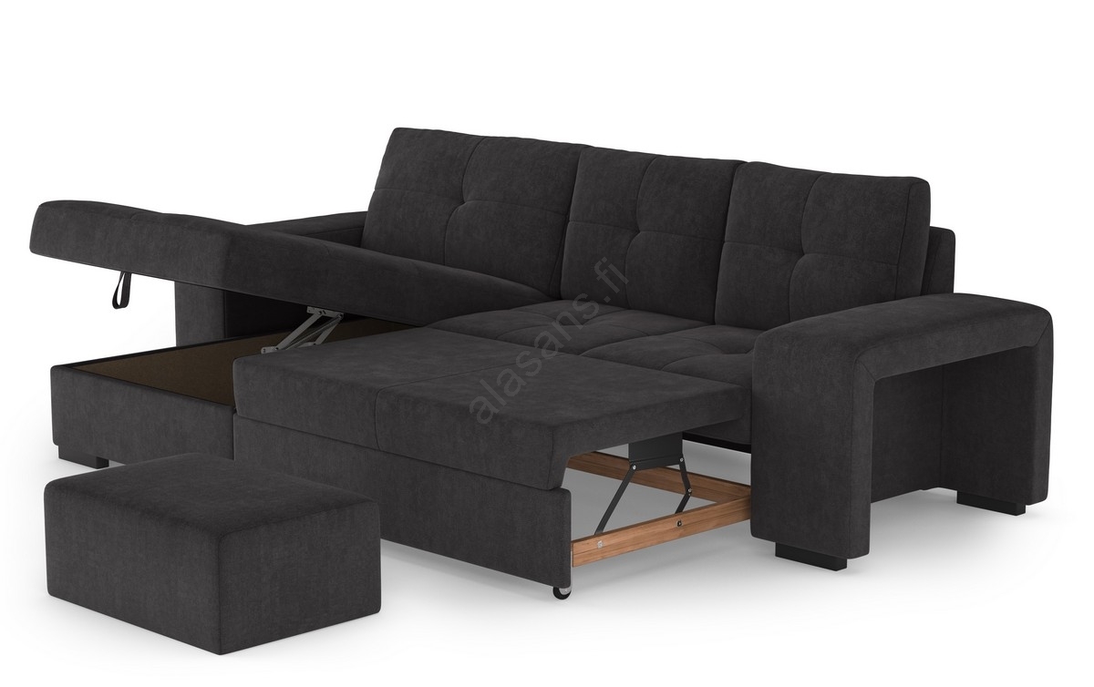 Avattava vuodesohva säilytystilalla ja rahilla PALERMO, musta, vasenkätinen | Alasans