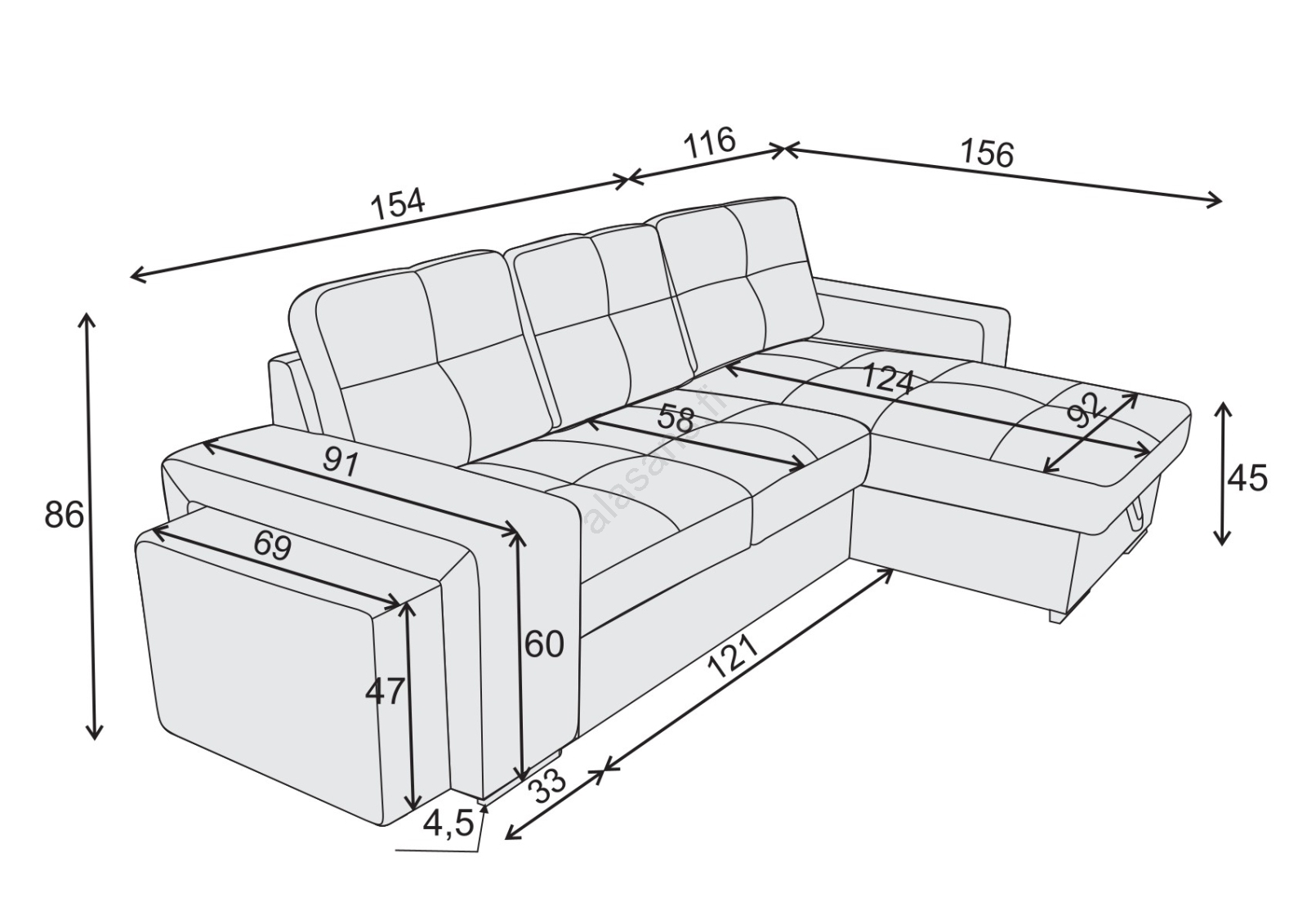 • Istuinkorkeus: 45 cm.