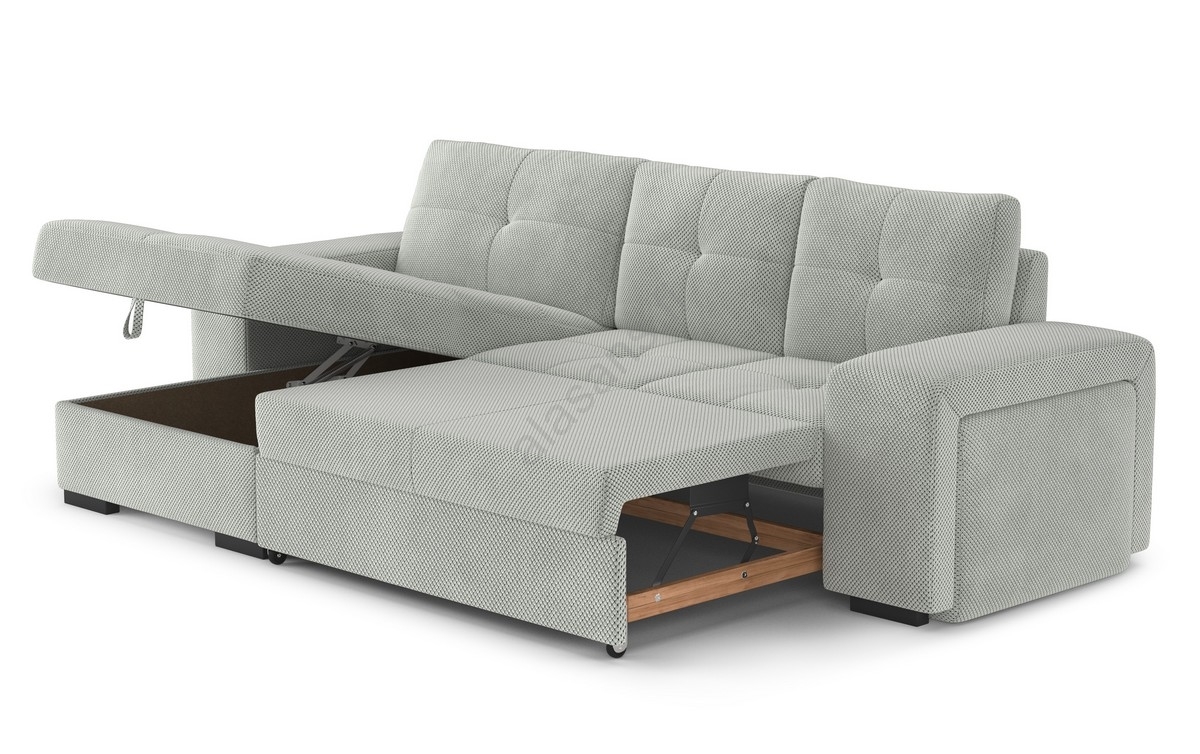 • Modernin tikkaustyön ja harkitun muotoilun ansiosta tämä kulmasohva sopii erinomaisesti pienempiin tiloihin, mutta tarjoaa silti suuren vuodeosan ja runsaasti säilytystilaa.