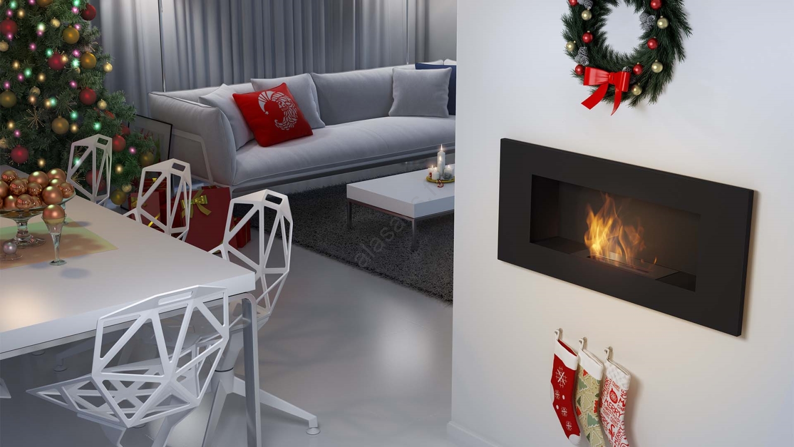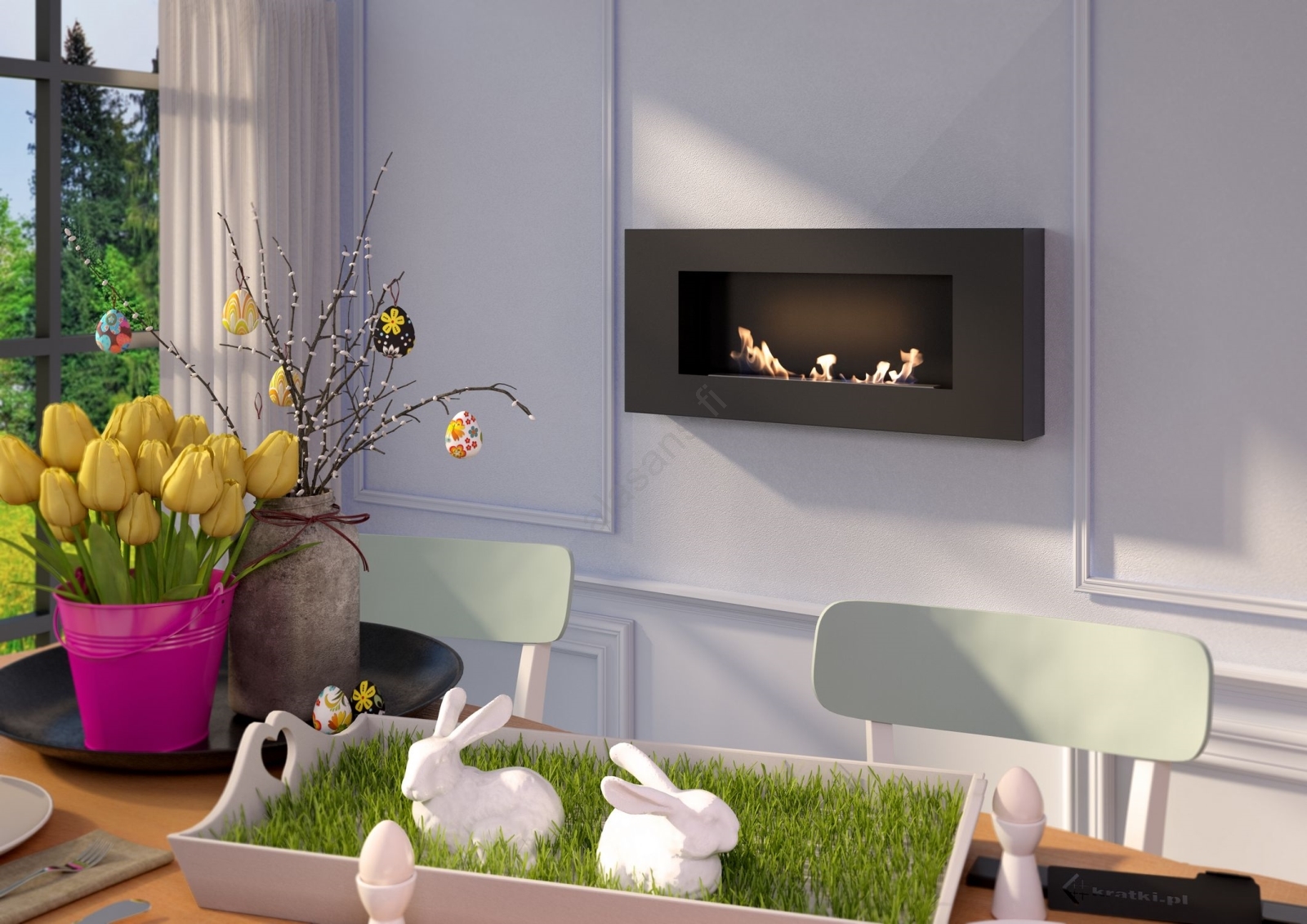 • Yksinkertainen moderni biotakka, joka voidaan ripustaa seinälle tai sijoittaa valmiiseen syvennykseen.