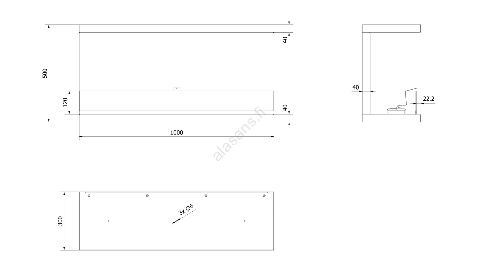 Kratki X-RAY/TUV - Sisäänrakennettava bioetanolitakka X-RAY 50 x 100 cm, 3,5 kW, musta | Alasans