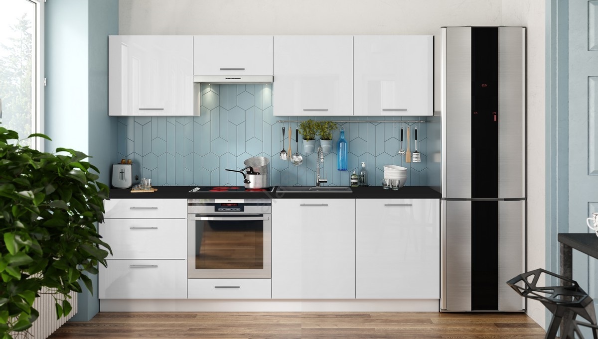 • Keittiökaluste CELESTE 240 cm, kiiltävän valkoinen