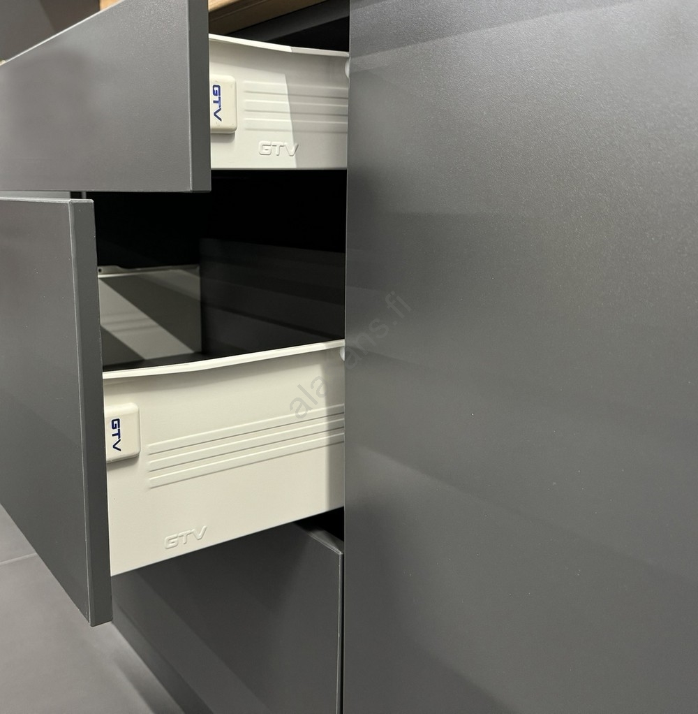 • Ylä kaapit on varustettu kaasujousilla, laatikoissa on laadukkaat koteloidut metalliliukukiskot.