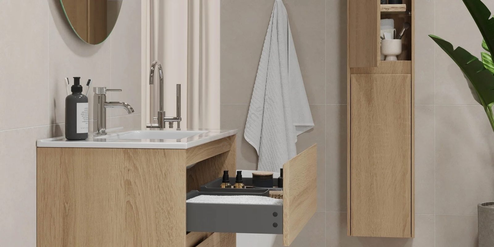• Kylpyhuonekaappi pesualtaalla MOLDE 80 cm, tammi
