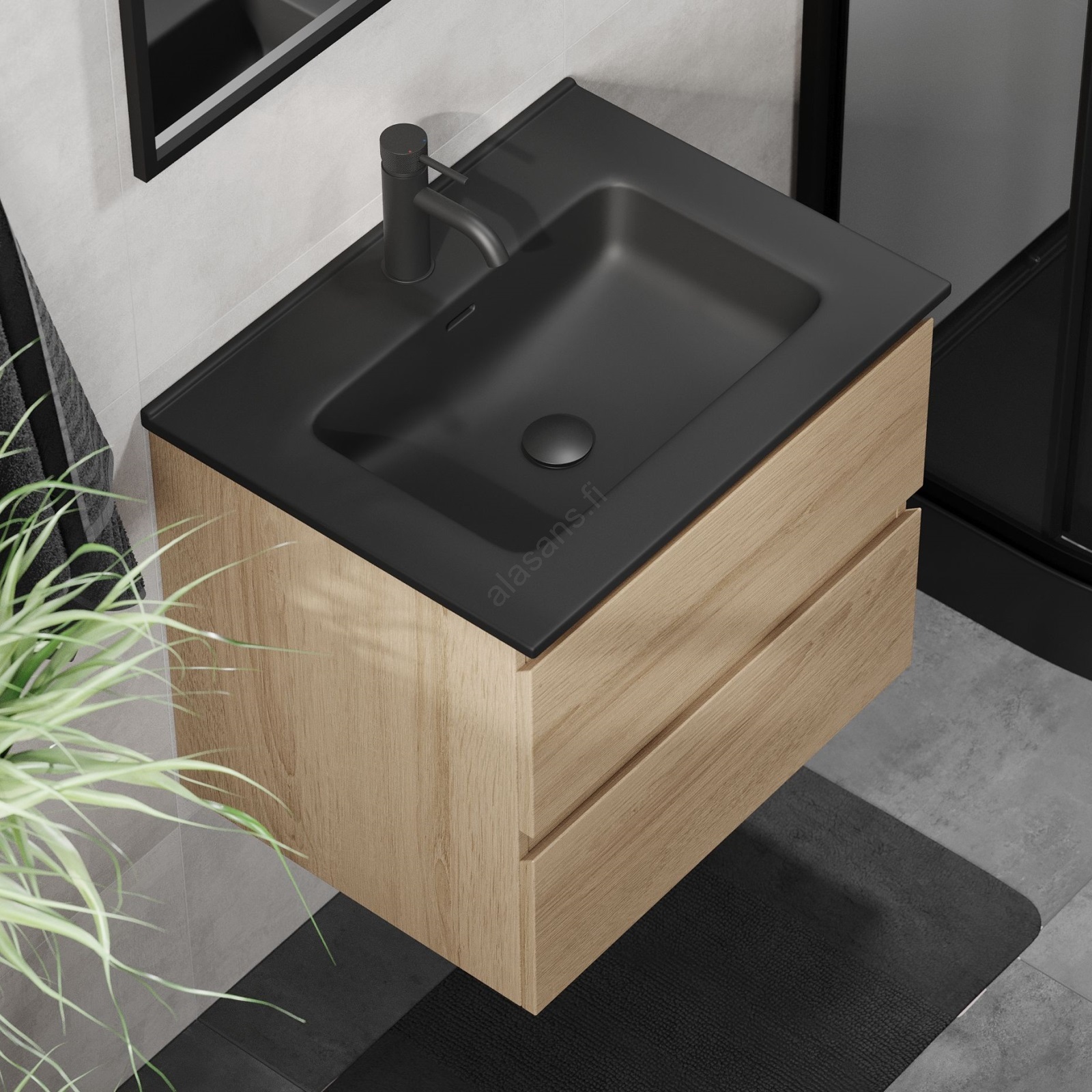 Kylpyhuoneen kaappi pesualtaalla KENWOOD 61 cm tammi/musta | Alasans