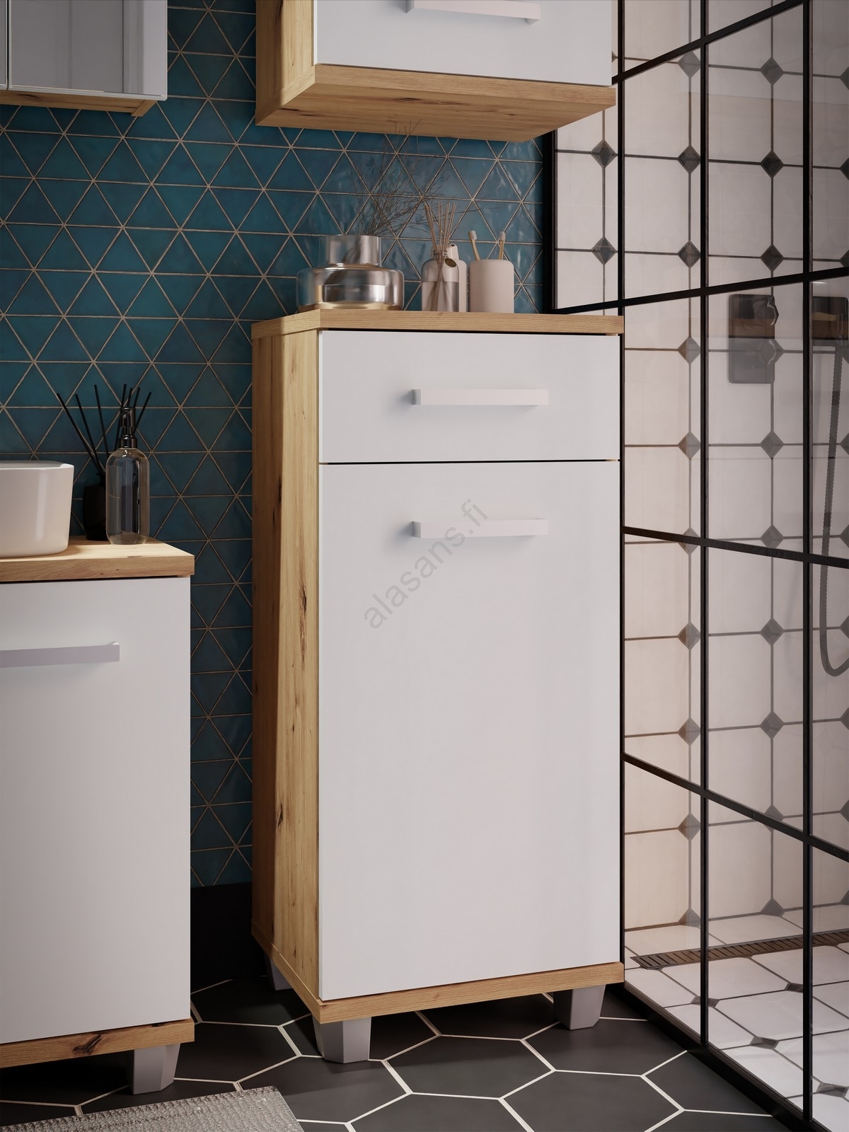 Kylpyhuoneen kaappi VENOM valkoinen/artisaanitammi | Alasans