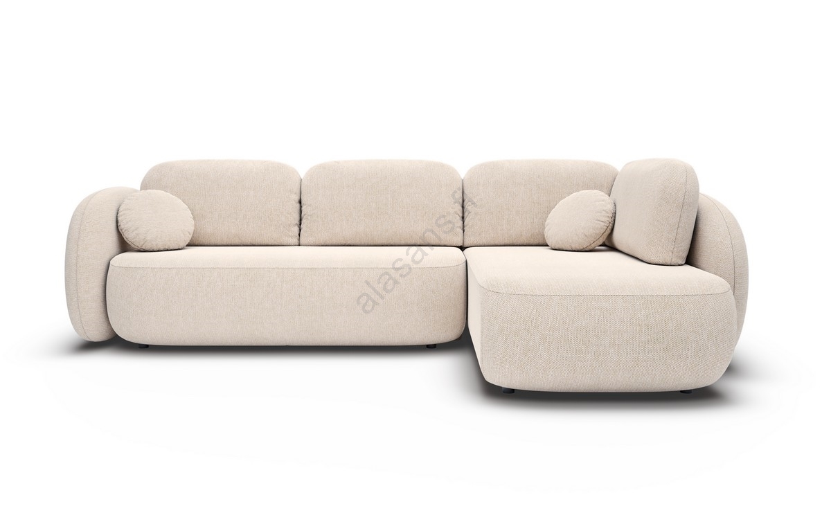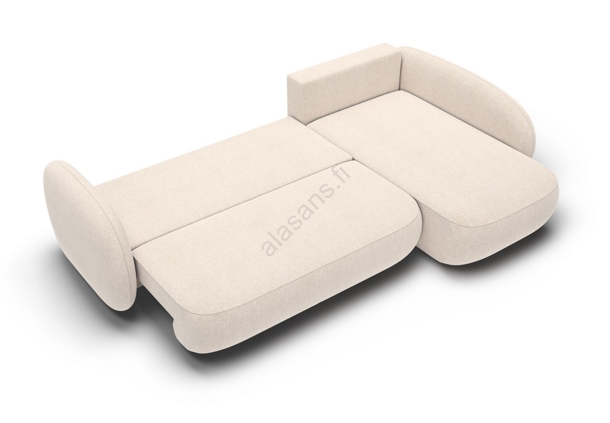 OLBIA L-mallinen avattava kulmasohva säilytystilalla, oikeanpuoleinen, beige | Alasans