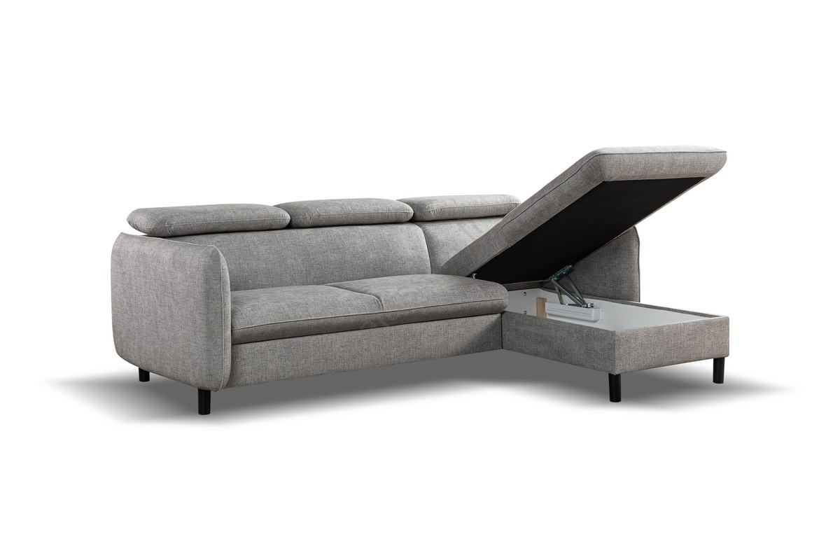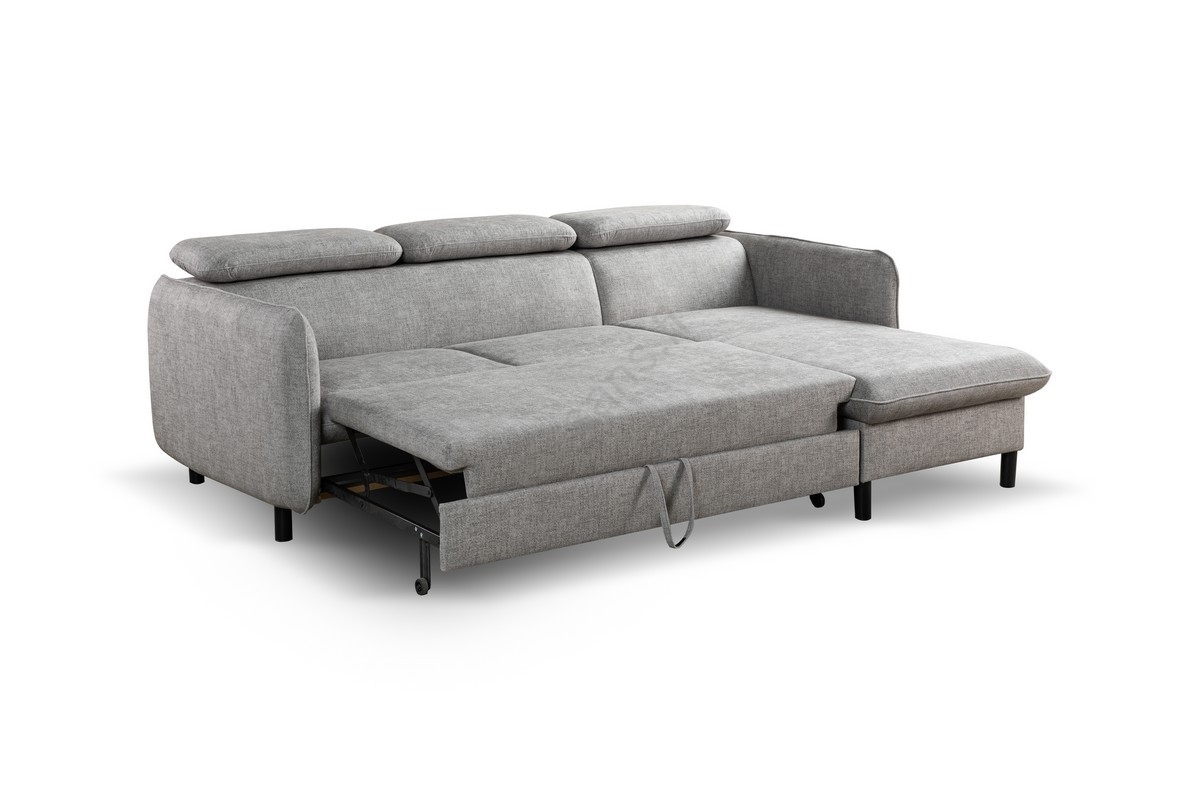 • NISA L-muotoinen avattava kulmasohva säilytystilalla, harmaa, oikeanpuoleinen
