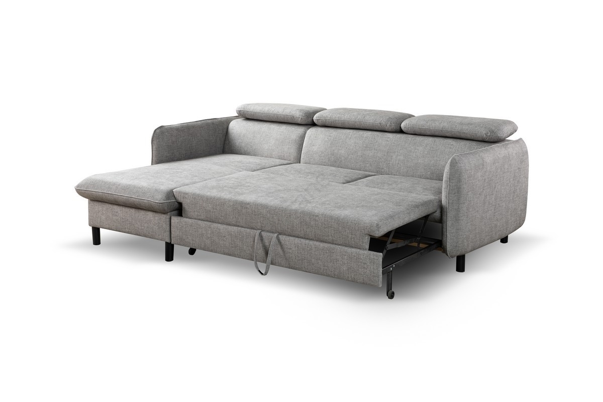 • NISA L-muotoinen avattava kulmasohva säilytystilalla, harmaa, oikeanpuoleinen