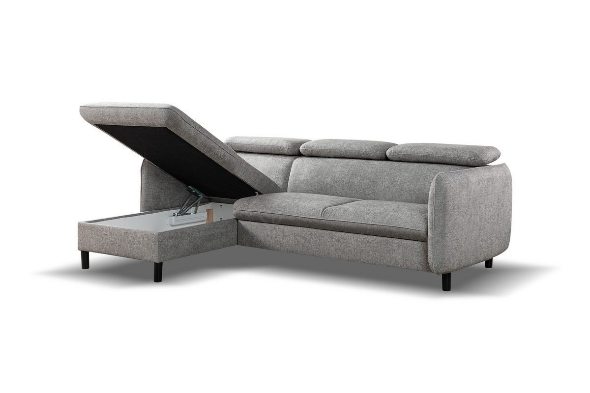 • NISA L-muotoinen avattava kulmasohva säilytystilalla, harmaa, vasenkätinen