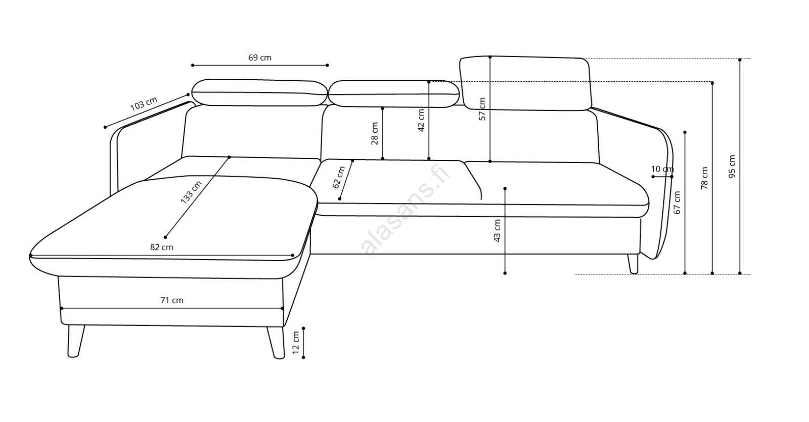• Sohvan pinta on erittäin miellyttävää ja pehmeää kangasta.