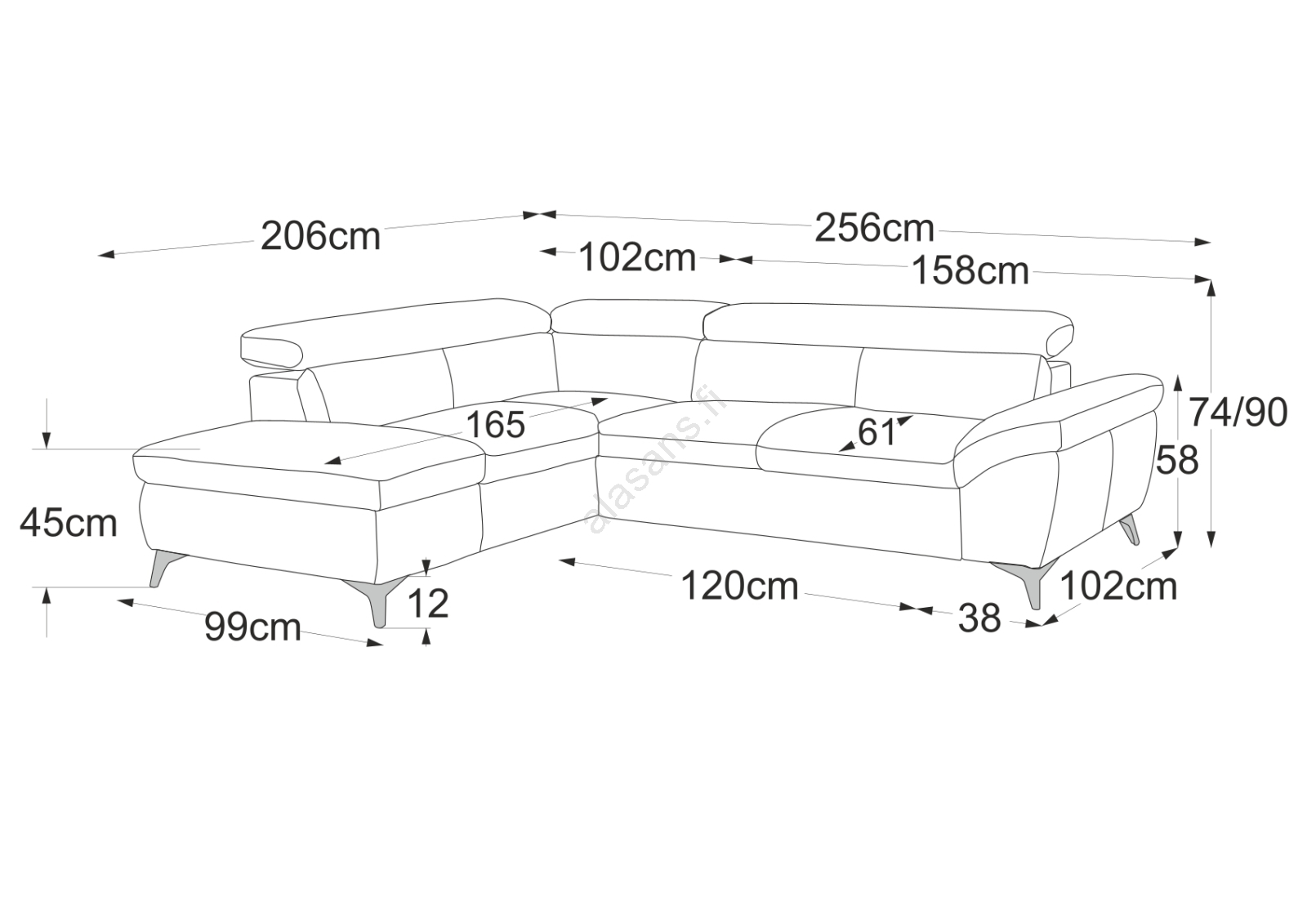 • 12 cm korkeat metallijalat antavat modernin ilmeen ja takaavat vakaan tuen.