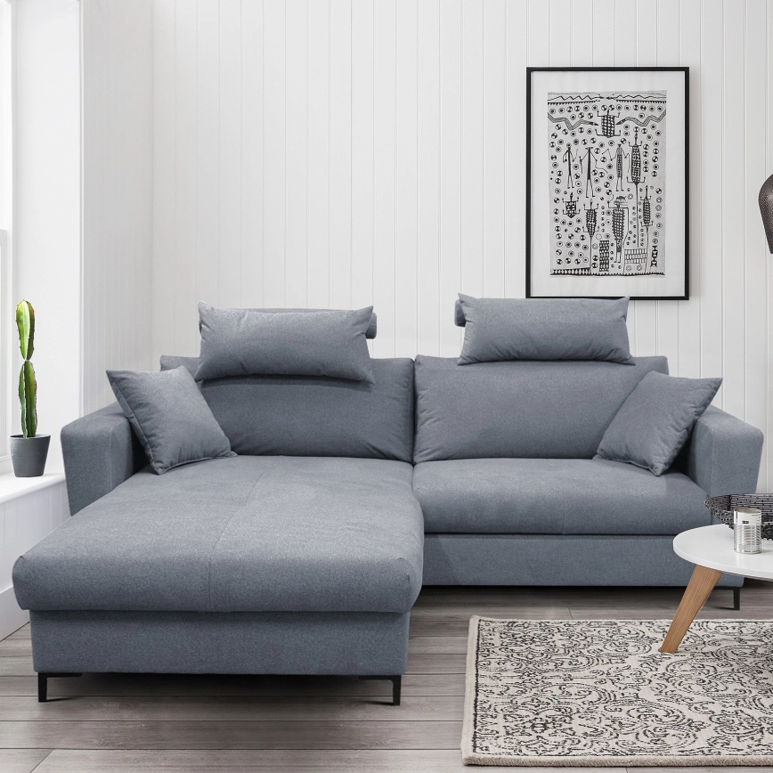 • Vuoteeksi avattava L-muotoinen kulmasohva säilytystilalla HORTA, vasen, harmaa