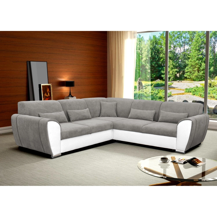 • L-muotoinen avattava VISEU-kulmasohva, vasen, harmaa/valkoinen, säilytystilalla