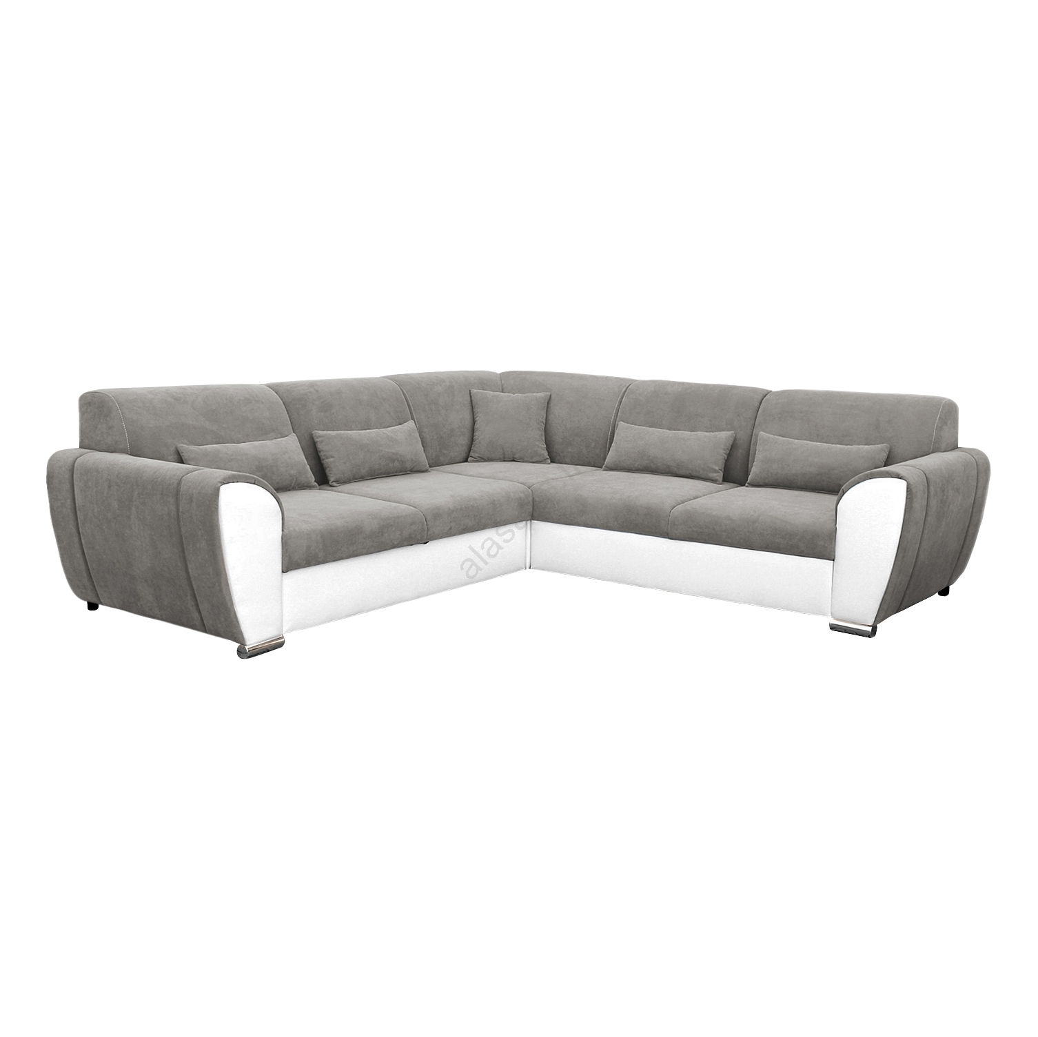 L-muotoinen avattava VISEU-kulmasohva, vasen, harmaa/valkoinen, säilytystilalla | Alasans