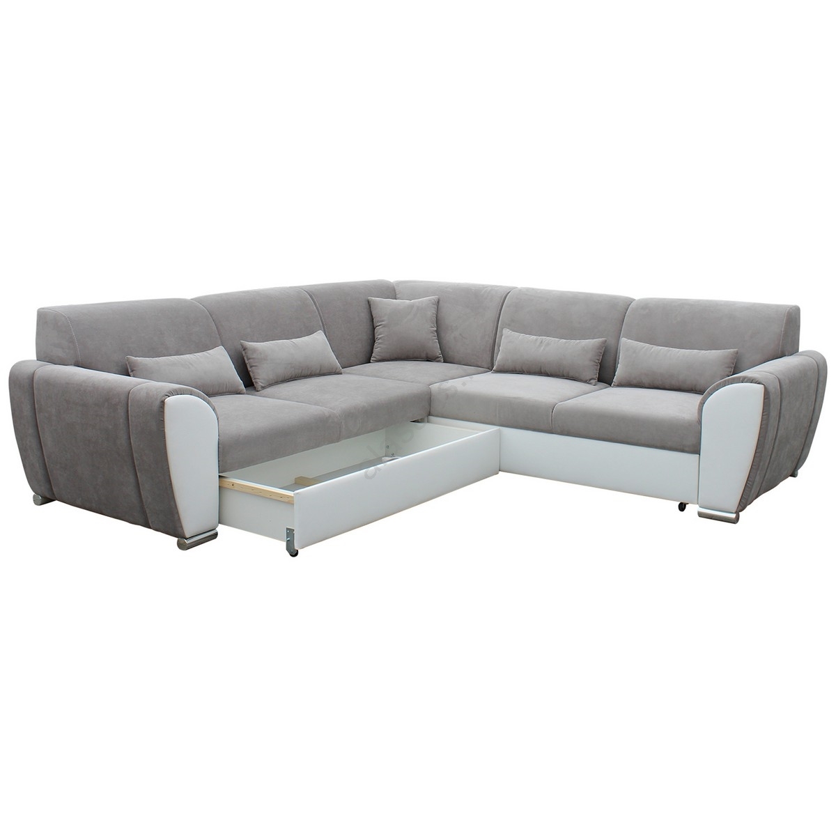 • L-muotoinen avattava kulmasohva säilytystilalla VISEU oikeanpuoleinen harmaa/valkoinen