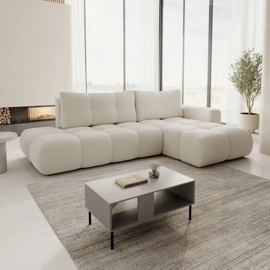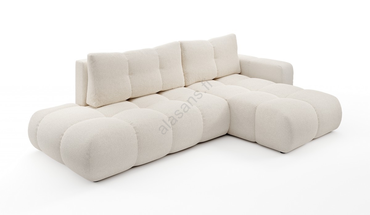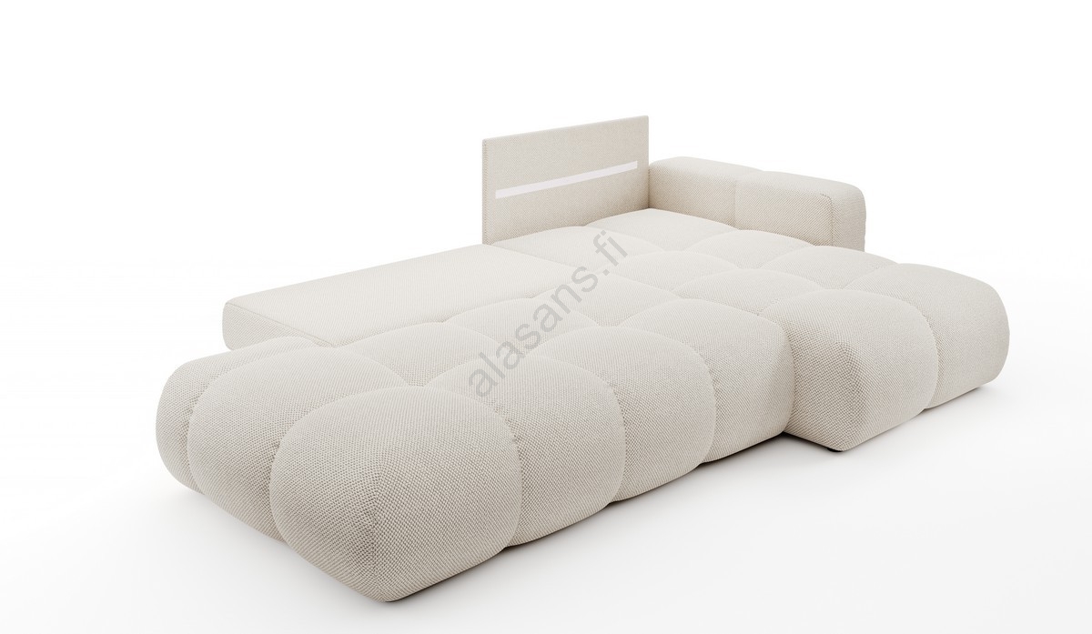 • ALMADA L-muotoinen verhoiltu vuodesohva säilytystilalla, oikeanpuoleinen, beige