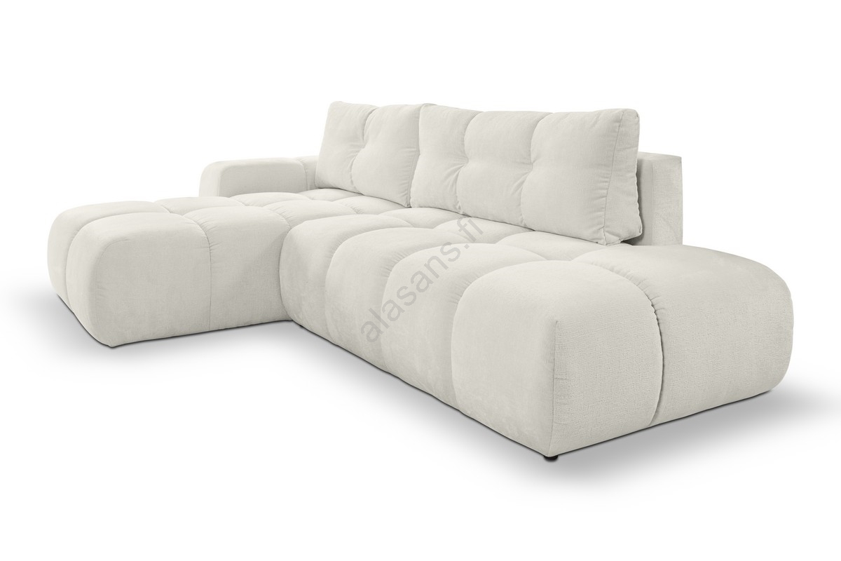 • ALMADA L-muotoinen verhoiltu vuodesohva säilytystilalla, oikeanpuoleinen, beige