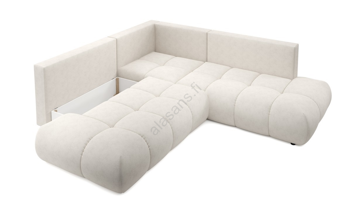 • Avattava, verhoiltu L-mallinen kulmasohva ALMADA, oikeanpuoleinen, beige