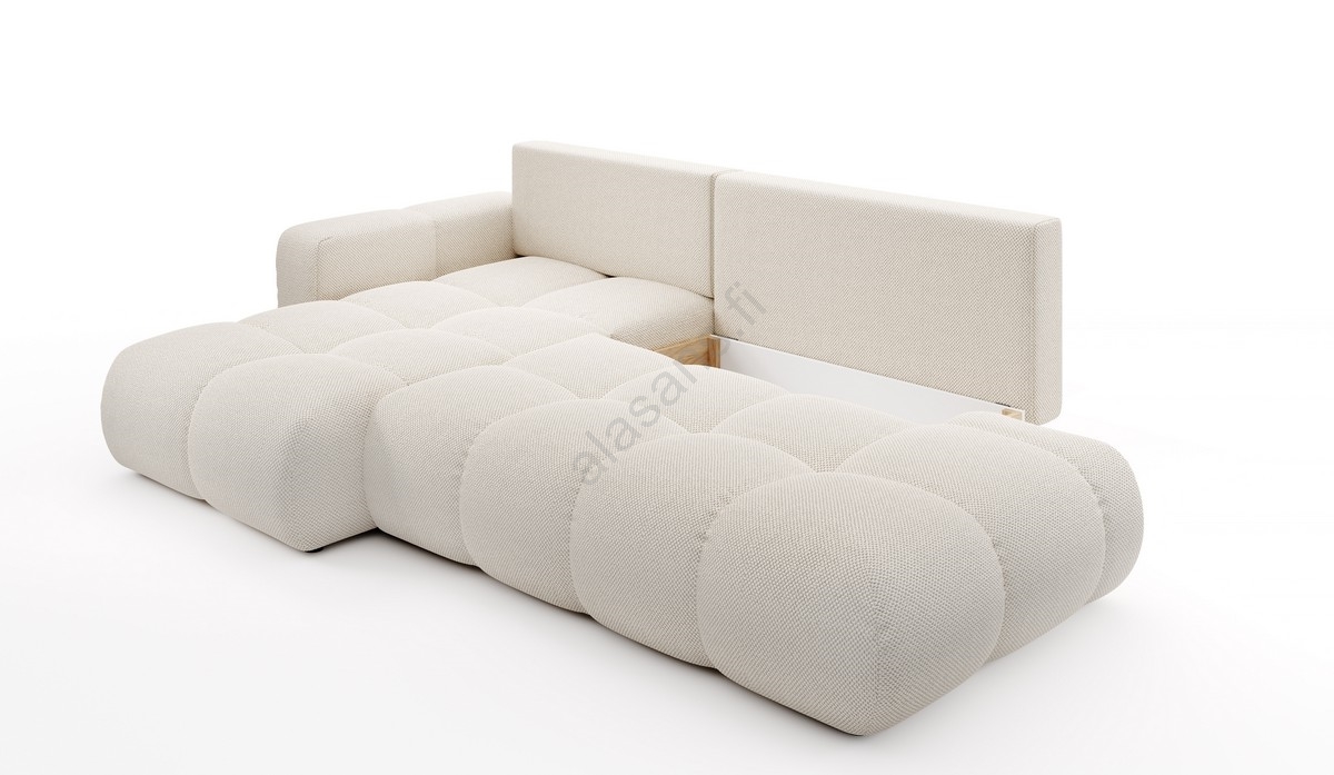 Avattava verhoiltu L-mallinen kulmasohva ALMADA, vasenkätinen, vaalea beige | Alasans