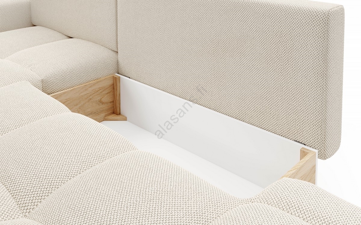• ALMADA L-muotoinen verhoiltu vuodesohva säilytystilalla, oikeanpuoleinen, beige
