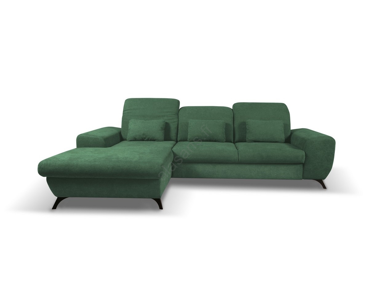 • L-muotoinen verhoiltu kulmasohva ALTA, vasenkätinen, vuoteeksi avattava ja säilytystilalla, vihreä