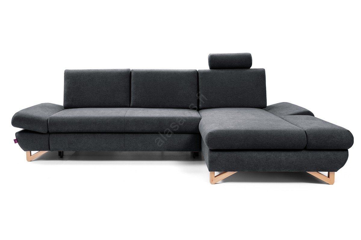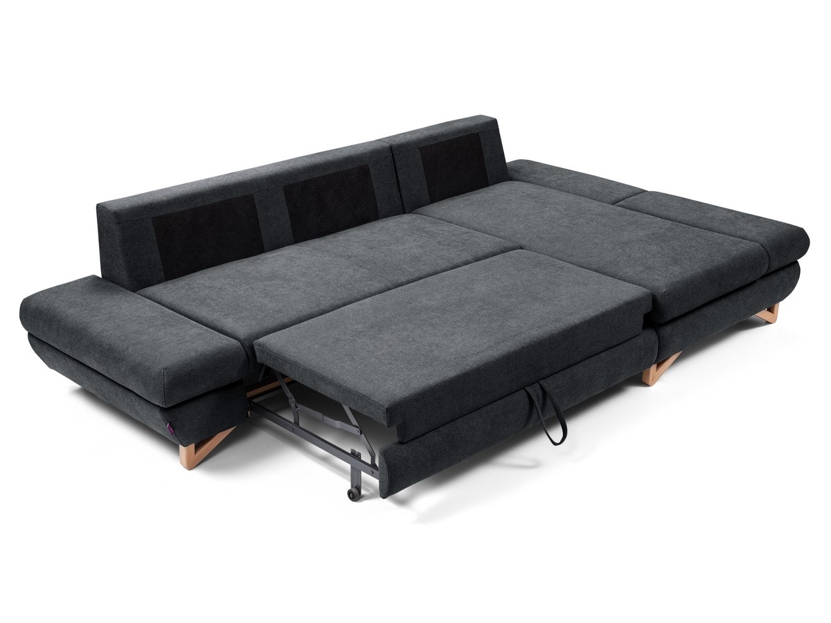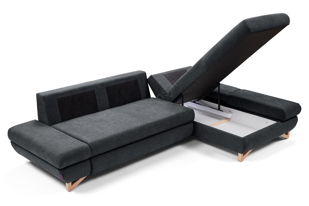 Avattava verhoiltu oikeanpuoleinen L-muotoinen kulmasohva AVESTA säilytystilalla, antrasiitti